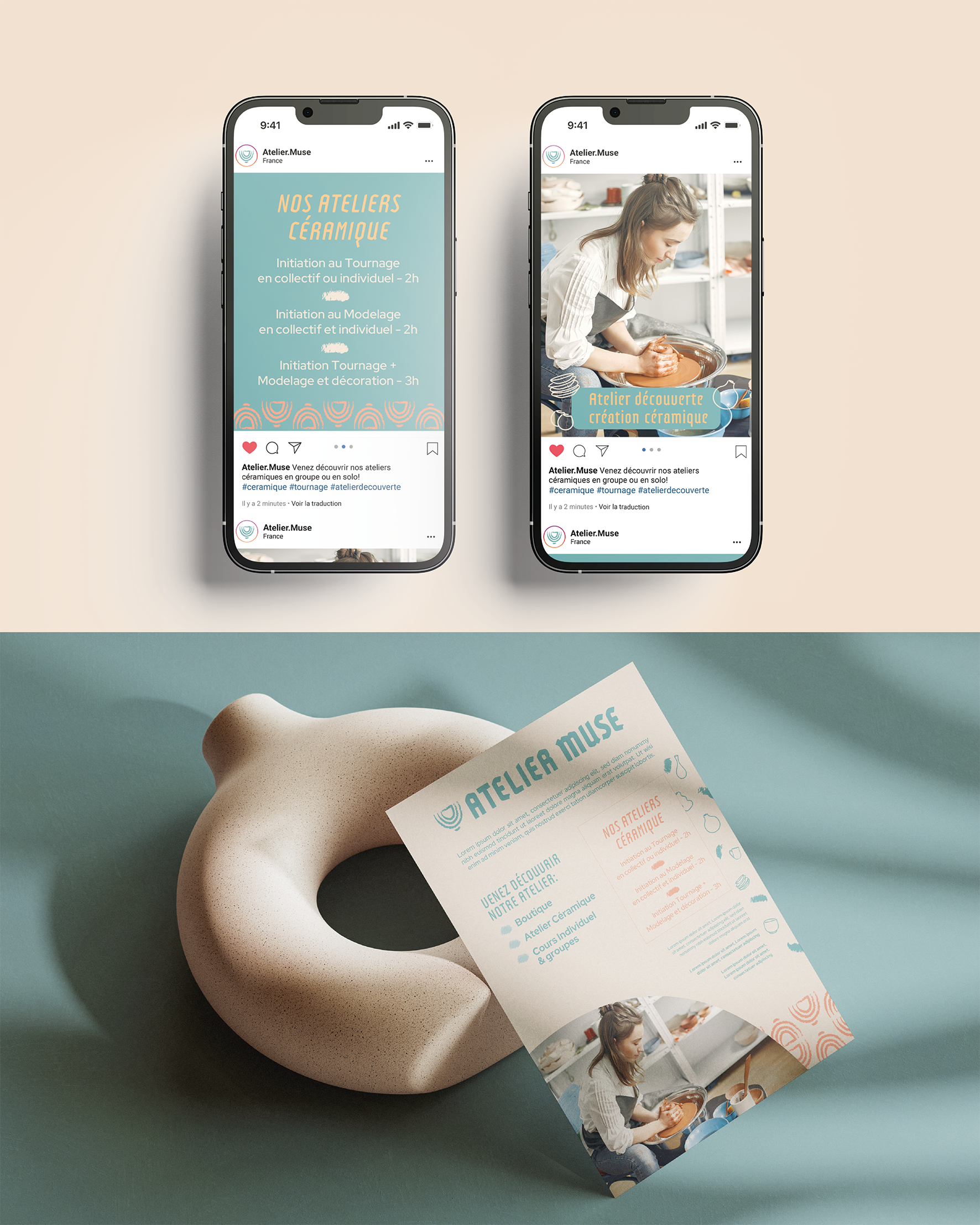 Atelier Muse is a modern ceramic workshop. Key words for this brand identity are: passion, inspiration, naturalness, precision, poetry. (passion project)