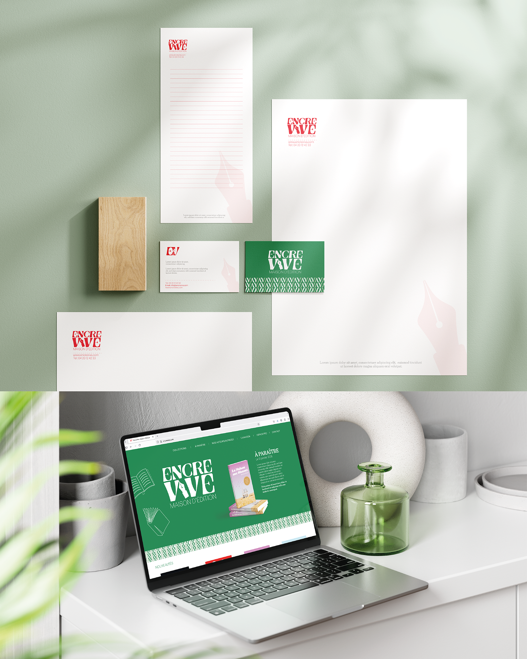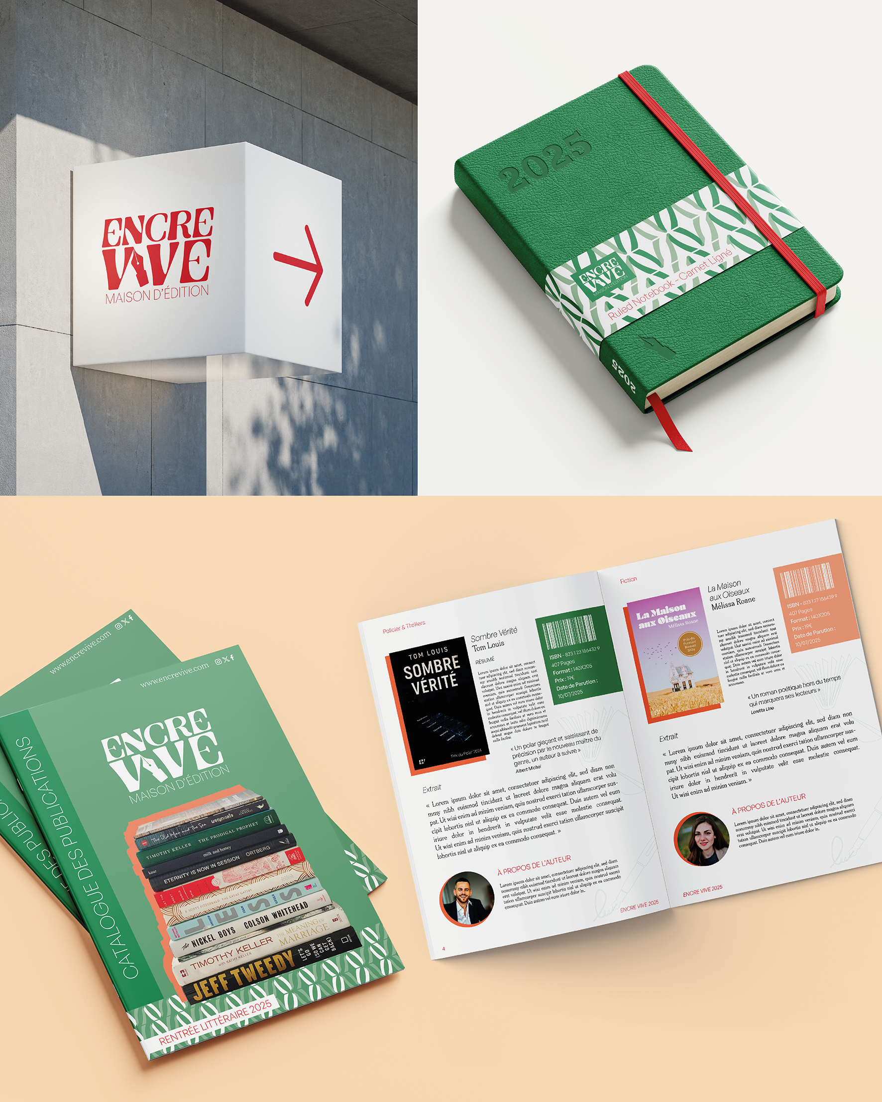 Encre Vive is an independent generalist publishing house. The values of the brand are authenticity, excellence, discovery and durability. (passion project)
