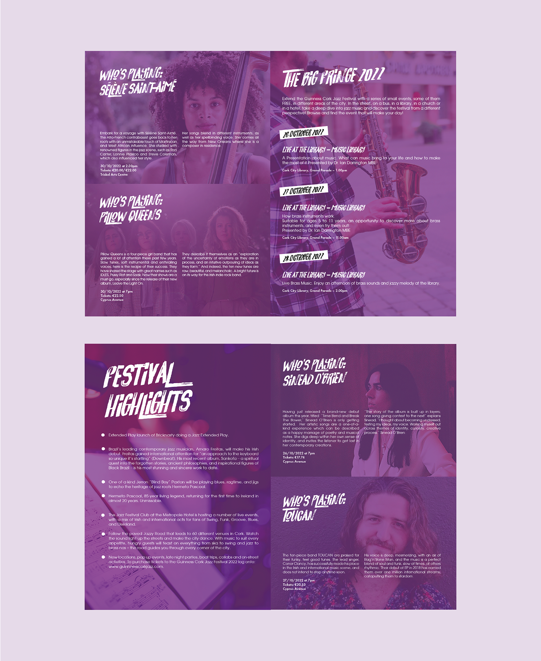 Layout of a brochure for the Guinness Cork Jazz Festival 2022