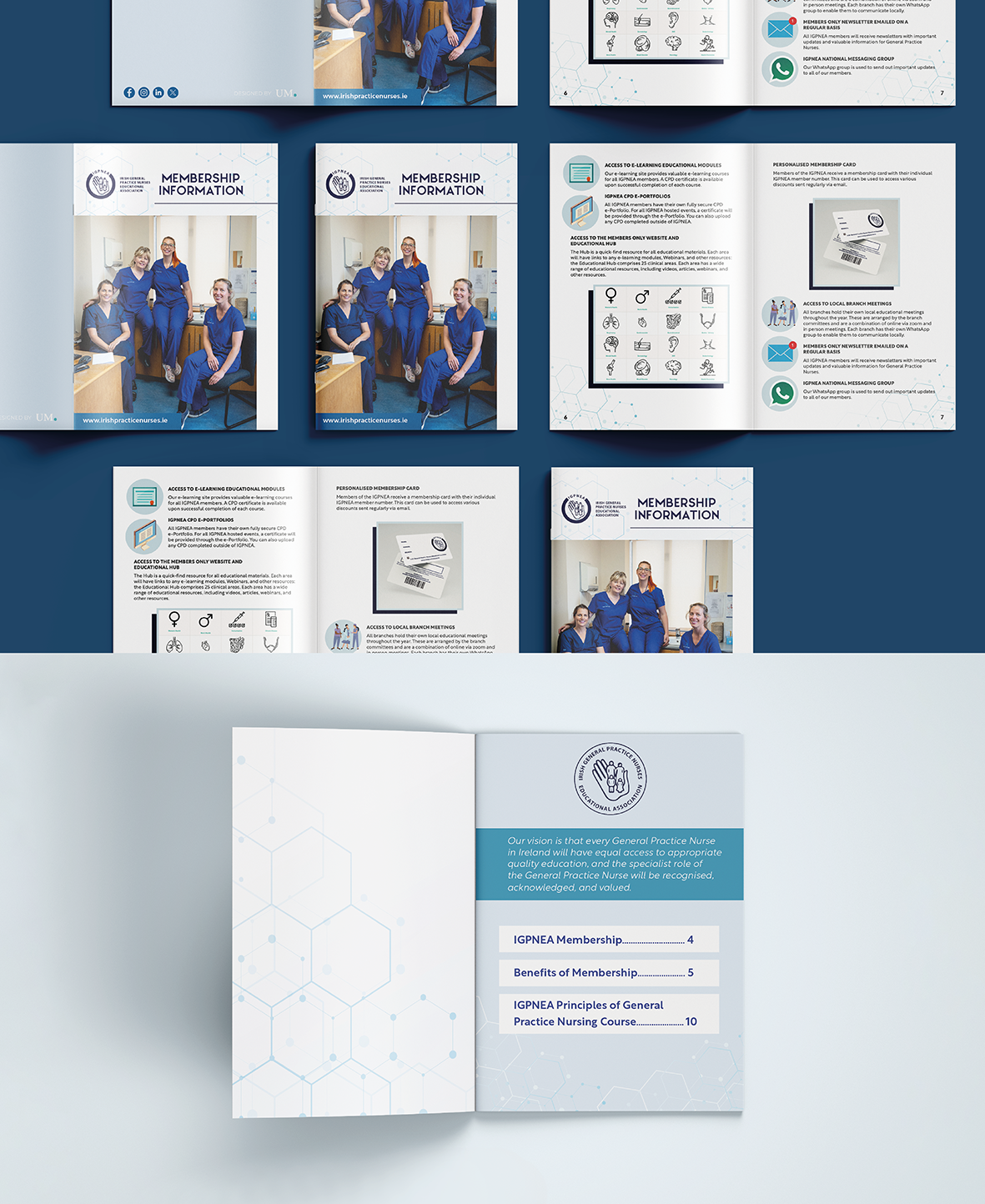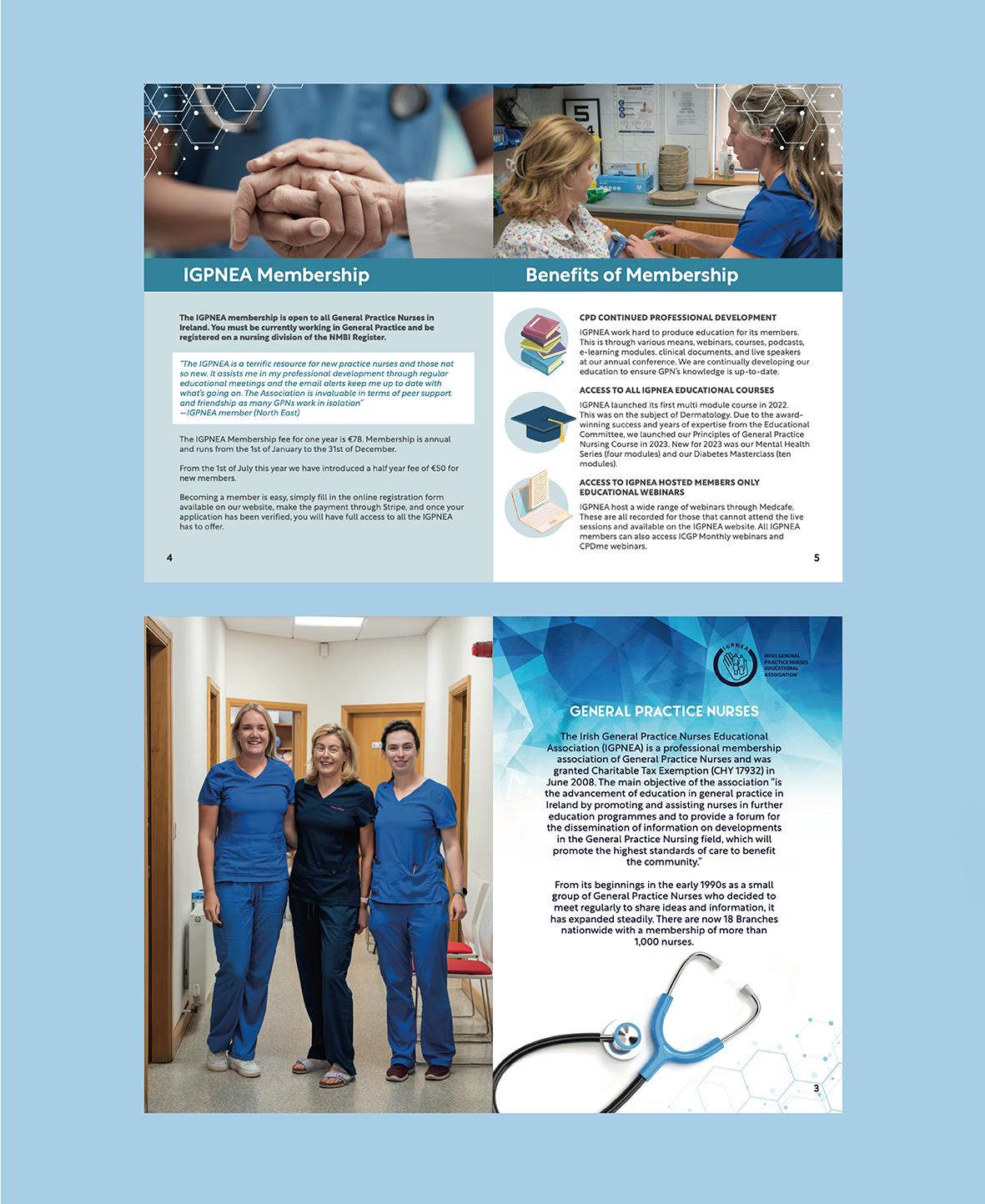 Cover and Interior design of a membership brochure for an Irish nurse association (IGPNEA)