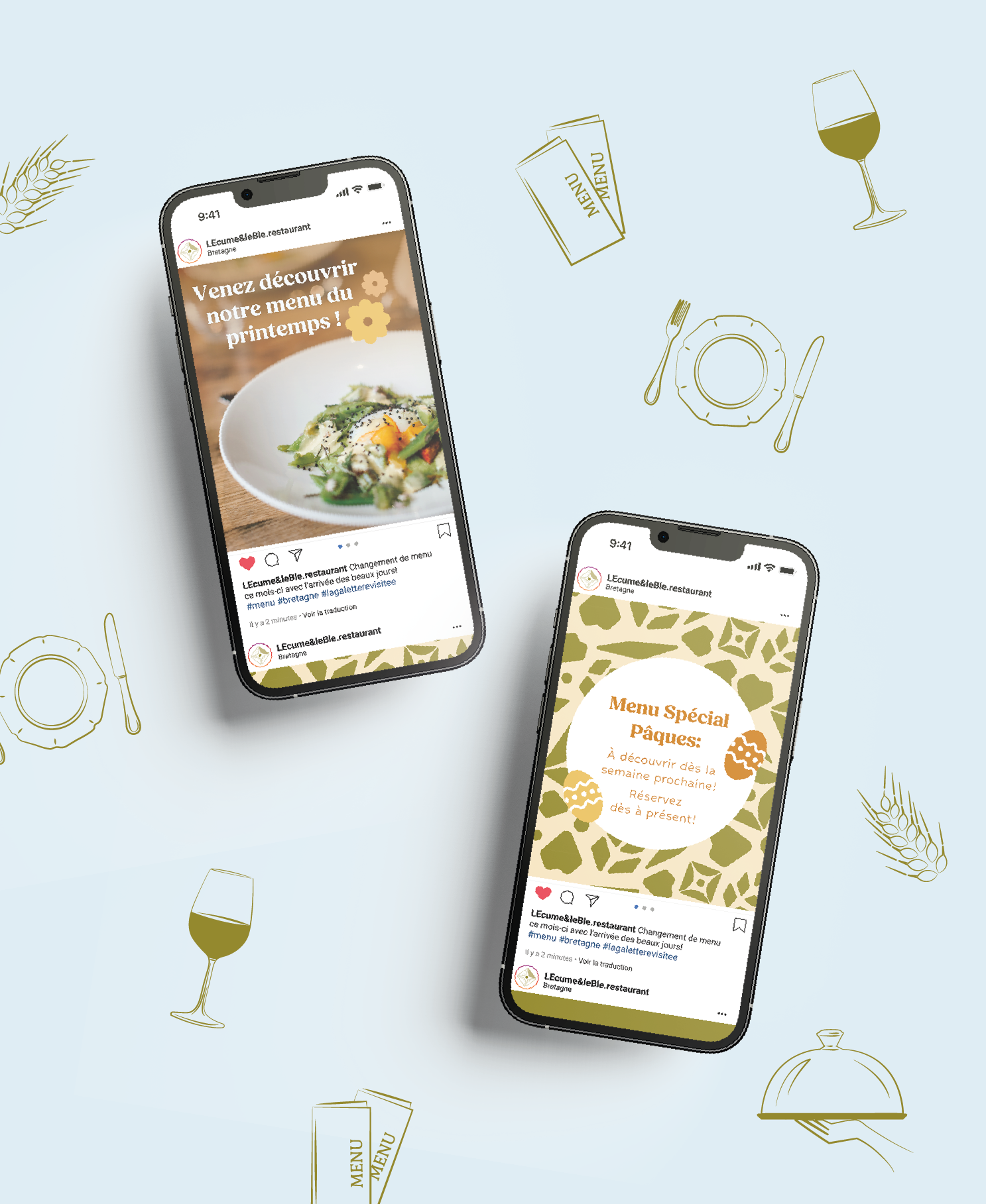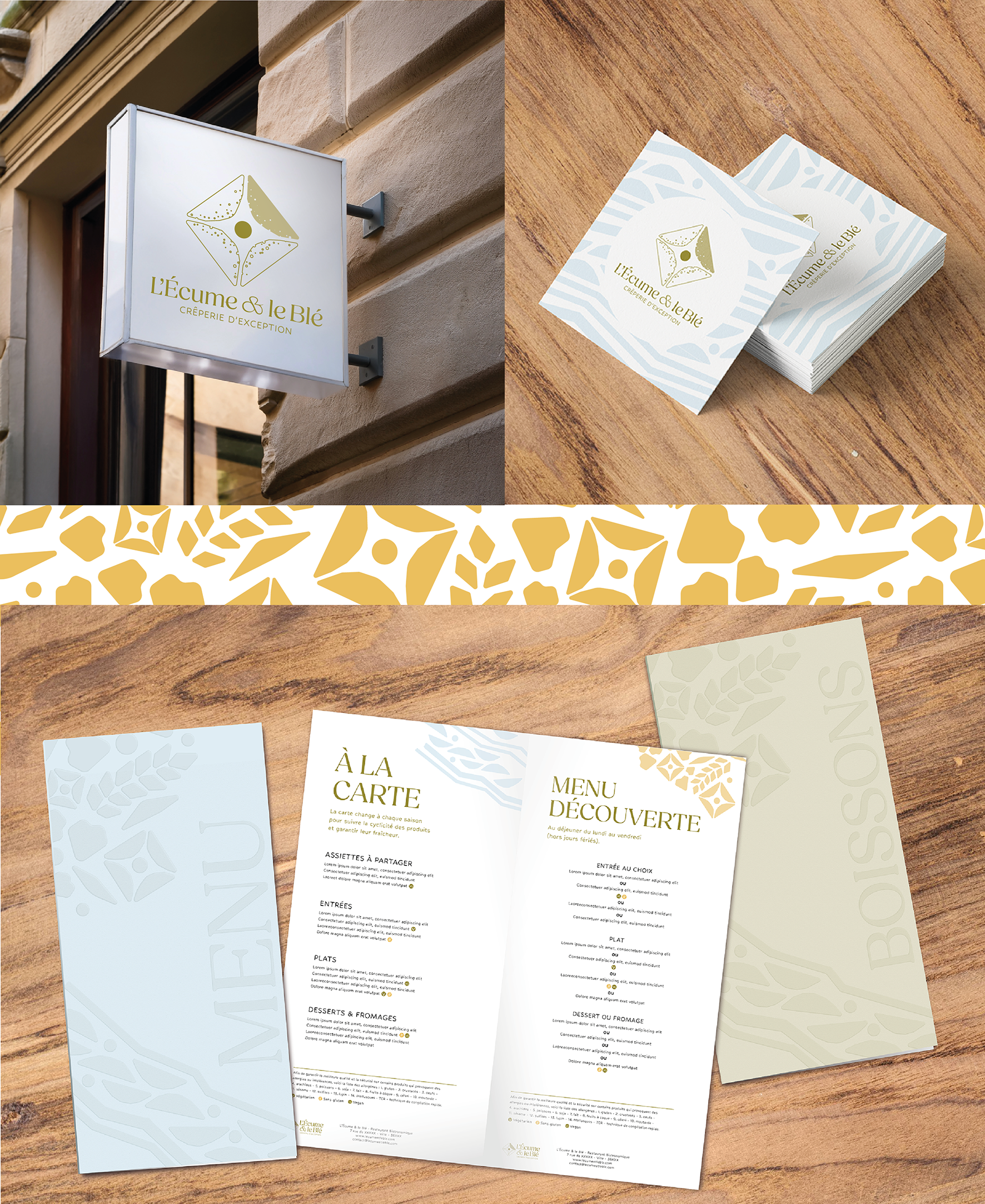 L'Écume & le Blé is a gourmet crêperie that elevates the traditional Breton crêpe into a refined culinary experience. The brand identity needed to be modern, audacious, sharing with a traditional touch.