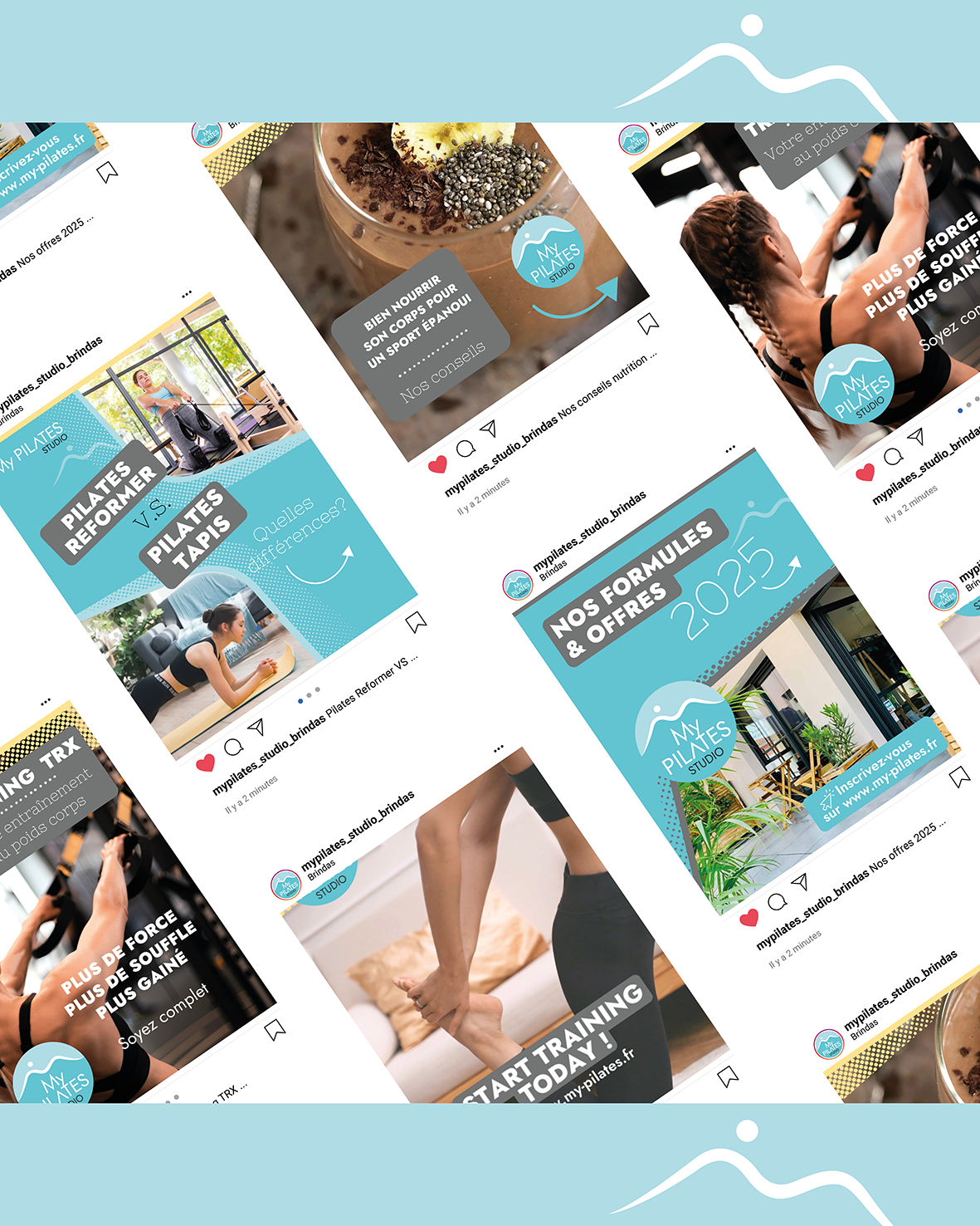 Rebrand for the pilates studio My Pilates. My Pilates is a French studio based in Lyon. The client needed an update of the brand while keeping some visual elements from the previous identity.